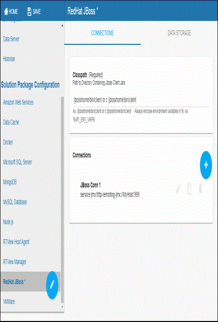 - Navigate to Solution Package Configuration > RedHat JBoss > DATA STORAGE tab.