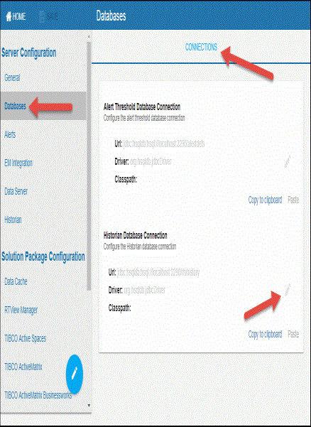 • Navigate to the RTView Configuration Application > Server Configuration > Databases > Connections tab.