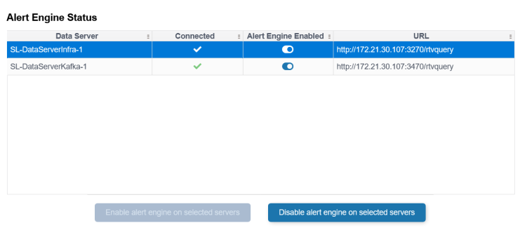 Select one or more Data Servers in the Alert Engine Status table, then click