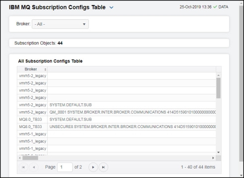 Select the MQ broker for which you want to view subscription configs or select All to view all subscription configs for all brokers. |
