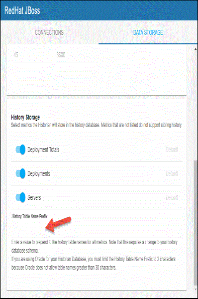 Defining a Prefix for All History Table Names for RedHat JBoss Metrics