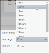 Select a time range from the drop down menu varying from 5 Minutes to Last 7 Days. By default, the time range end point is the current time.