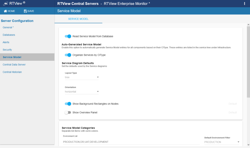 The initially selected value in the Environment filter field on the SERVICE TREE and SERVICE VIEWS tabs in the monitor. |
