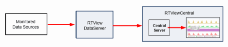 The RTView DataServers collect and store metric data. RTViewCentral allows you to view the metric data from the RTView DataServers, manage alerts against that metric data and integrate that metric data into a Service Model.