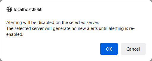 A confirmation dialog box will display. Click OK to continue and disable the selected alert engine(s).