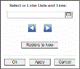 , choose the date and time, then click OK. Or, enter the date and time in the text field using the following format: MMM dd, YYYY HH:MM:ss (for example, Aug 21, 2011 12:24 PM) and click Apply. Use the Navigation Arrows