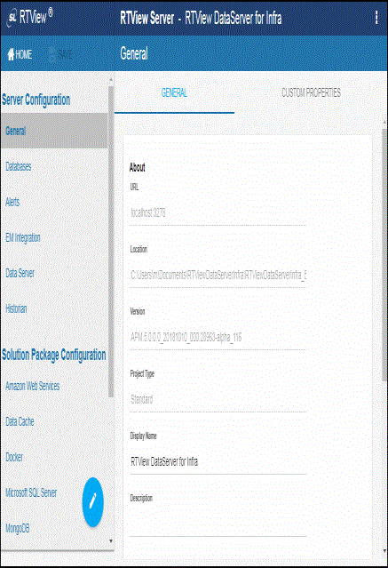 Define the name of the data server that you want to display in RTView Enterprise . Modifying the default name in this field is optional. However, for our example, enter Infrastructure_Data_Server so that we can verify our change in our verification section later in this document. Note: You can only enter alphanumeric characters, underbars, and dashes in the data server name. |
