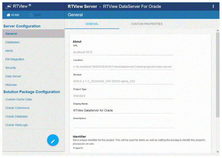 Define the name of the data server that you want to display in RTView Enterprise . Modifying the default name in this field is optional. However, for our example, enter Oracle_Data_Server so that we can verify our change in our verification section later in this document. Note: You can only enter alphanumeric characters, underbars, and dashes in the data server name. |
