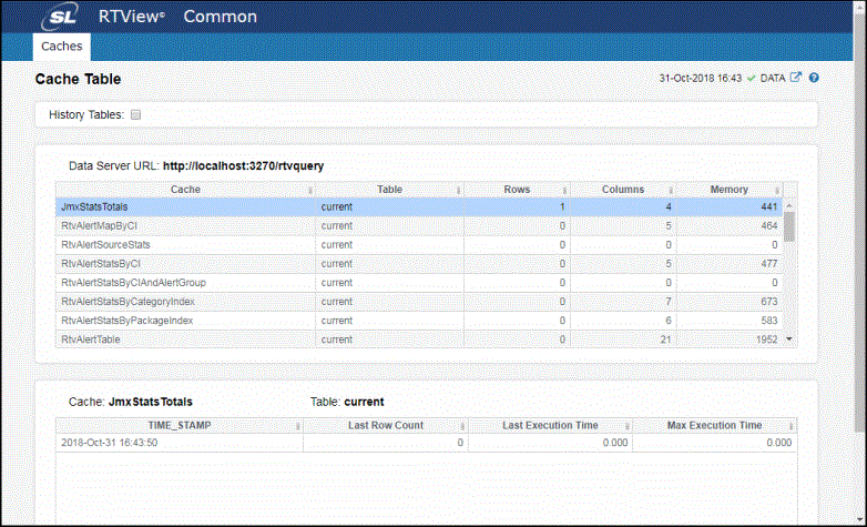 The RTView Cache Viewer application displays, which allows you to view the details for the caches that are collecting data.
