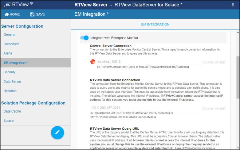 Next, you need to connect your data server to the RTView Enterprise Central Servers. To do so: