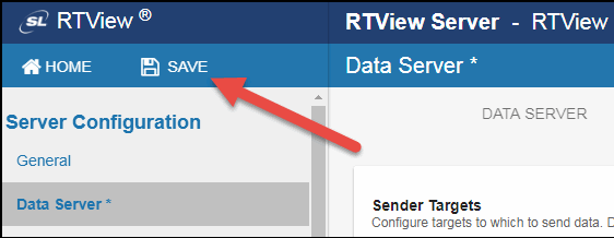 Once you have created all of your connections, click the SAVE button in the RTView Configuration Application.