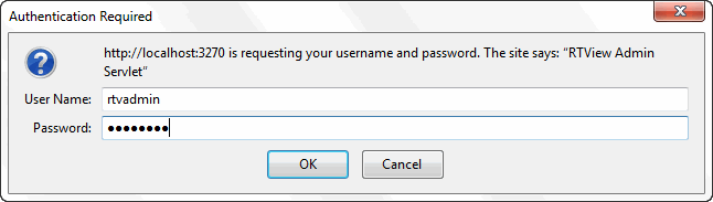 Note: If you specified a different port at startup (due to a port conflict), you must use the port you specified in the command line. For example, if you specified 44 as your port prefix in the command line at startup, then you would use: http(s)://<IP address>:4470/rtvadmin