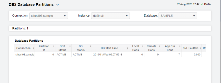 Database Partitions Table Each row is a different partition on the selected database. Column values describe the partition. |