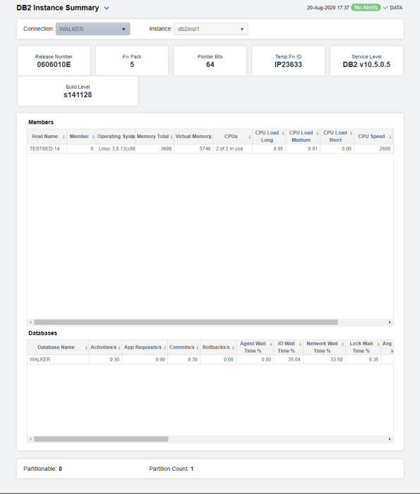 View current alert status and performance metrics of all or just one of your IBM DB2 instances.