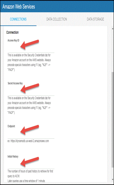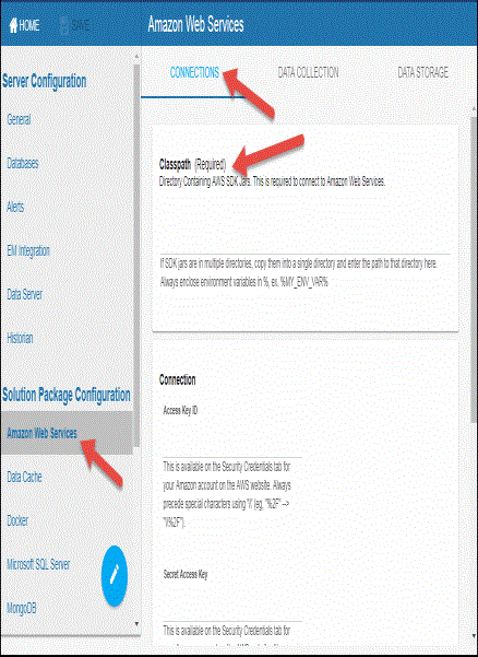 - Navigate to Solution Package Configuration>Amazon Web Services>DATA COLLECTION tab.