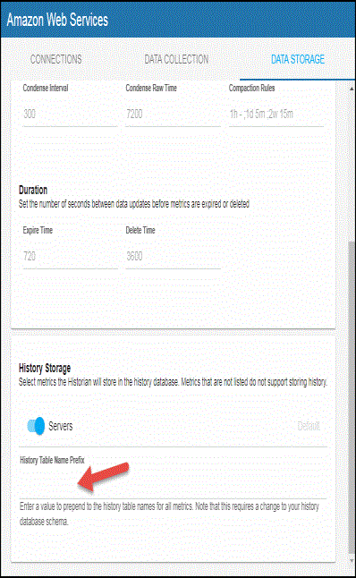 Condense Raw Time-- The time span of raw data kept in the cache history table. The default is 7200 seconds. The following cache is impacted by this setting: AwsEc2InstanceStats.