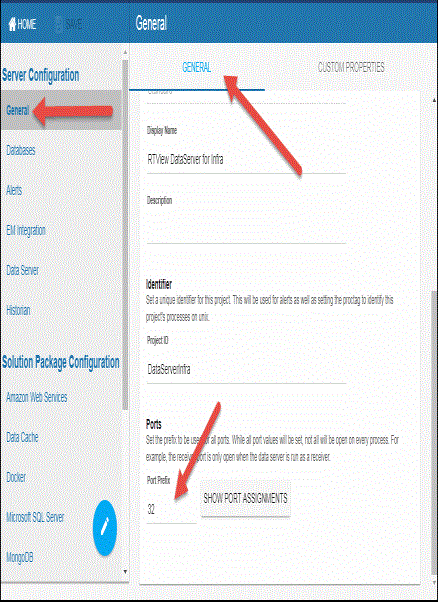 - Open the “RTView Configuration Application” and navigate to Server Configuration>General>GENERAL(tab) >Ports.