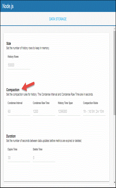 - In the Compaction region, click the Condense Interval, Condense Raw Time, History Time Span, and Compaction Rules fields and specify the desired settings.