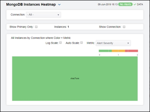 | • | All Instances Heatmap: Opens the MongoDB Instances Heatmap display, which shows status and alerts for all MongoDB instances in a heatmap format. |