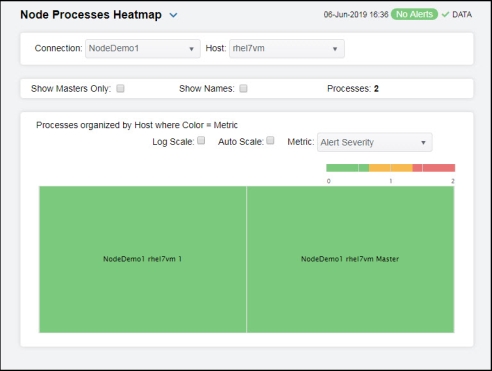 | • | Node Processes Heatmap: Opens the Node Processes Heatmap display, which consists of a color-coded heatmap view of data for all node processes for a particular connection/host combination. |