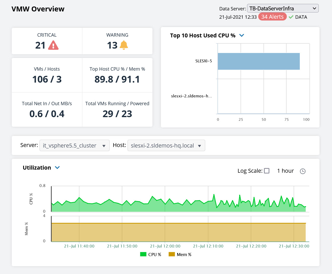 | • | The maximum percentage of CPU utilization and the maximum percentage of memory utilization across all hosts on your connected DataServer. |