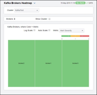 | • | Brokers Heatmap: Opens the Kafka Brokers Heatmap display, which allows you to view performance metrics for all servers on a particular cluster. |