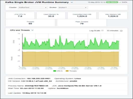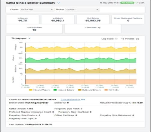 | • | Single Broker Summary: Opens the Kafka Single Broker Summary display, which contains JVM runtime data, broker status, topic, and topic trend details for a particular broker. |