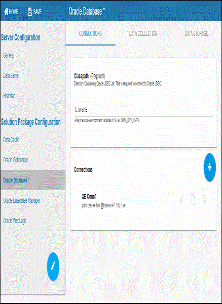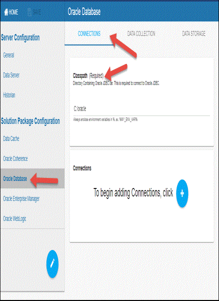 - Navigate to the Solution Package Configuration > Oracle Database > CONNECTIONS tab.
