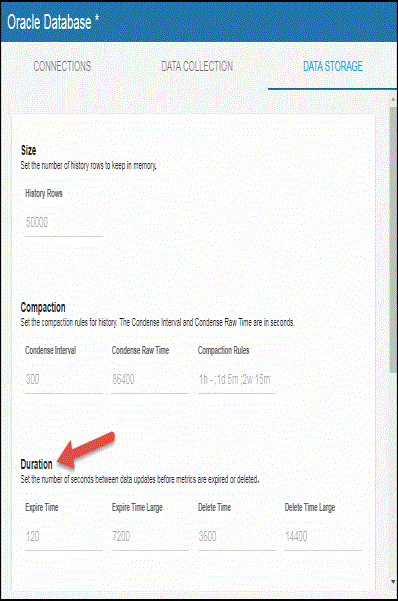 Delete Time: The number of seconds to wait for a data update before cached history data is removed from displays. The default is 3600 seconds. The caches impacted by this field are OraInstanceInfo, OraInstanceSessionStats and OraInstanceQueryExecStats.