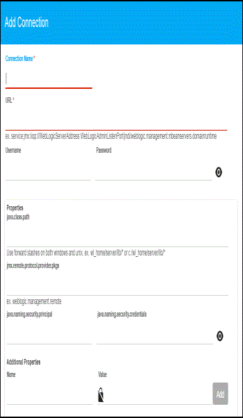 URL: Specify the path to the JMX connection of the WebLogic Server to which you want to connect.
