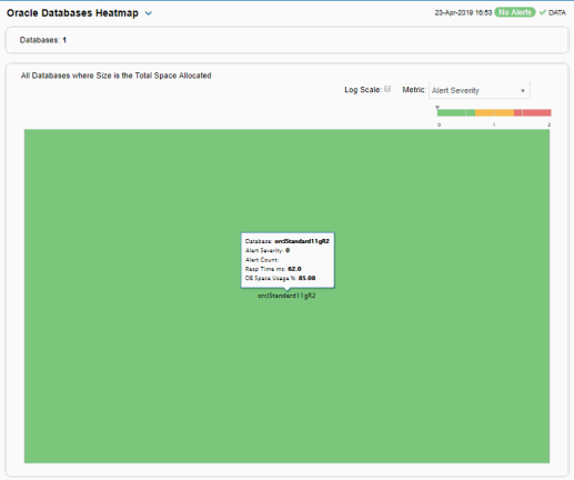 | • | Databases Heatmap : A heatmap shows alert status of all Oracle databases. |