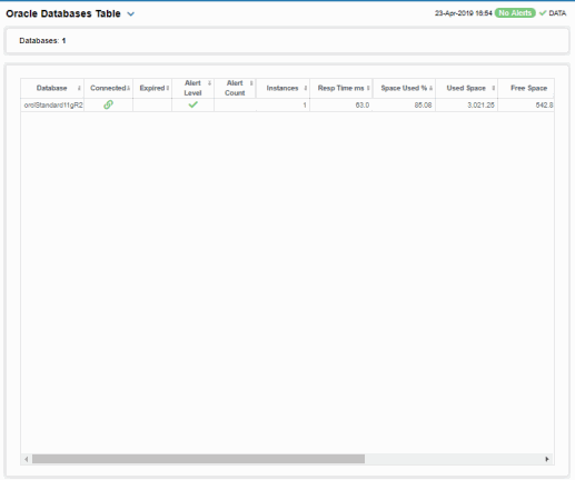 | • | Oracle Databases Table : A list of all Oracle databases with detailed utilization metrics. |