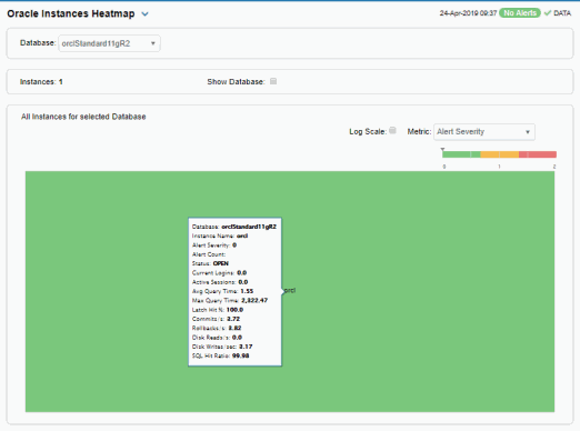 | • | Instances Heatmap : A heatmap shows alert status of Oracle Database instances. |