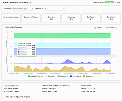 View status and alerts for all instances on one or all Oracle databases. Use this display to quickly identify an instance with performance or utilization issues.
