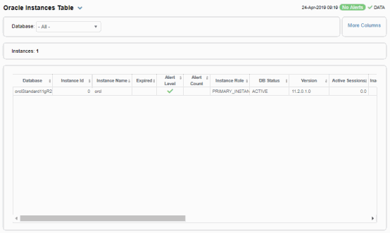 | • | Oracle Instances Table : A list of all Oracle Database instances with detailed utilization metrics. |