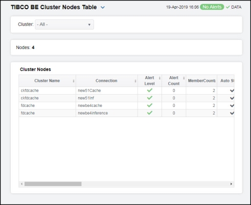 TIBCO BE Cluster Nodes Table