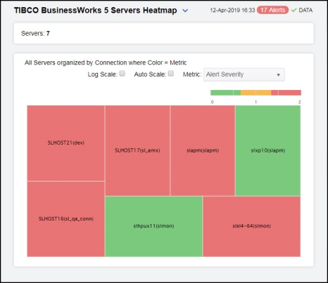 | • | All Servers Heatmap: Opens the TIBCO BusinessWorks 5 Servers Heatmap , which shows server and alert status for all BW5 servers. |