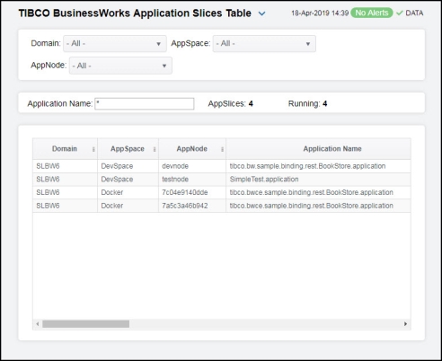 TIBCO BusinessWorks Application Slices Table