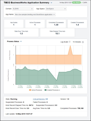 | • | BW Application: Opens the TIBCO BusinessWorks Application Summary display, which shows information for a single application. |