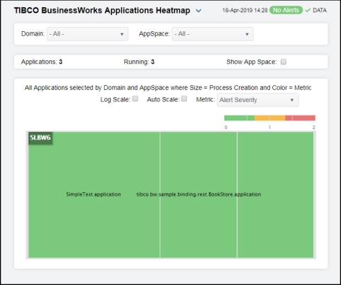| • | BW Applications Heatmap: Opens the TIBCO BusinessWorks Applications Heatmap , which shows server and alert status for all BW5 applications. |
