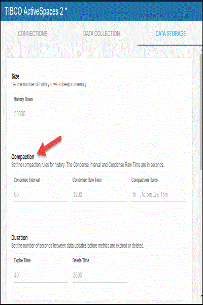 - In the Compaction region, click the Condense Interval,Condense Raw Time, and Compaction Rules fields and specify the desired settings.