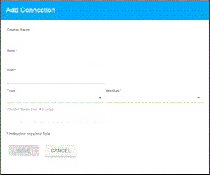 - Enter the Engine Name, the Host, the Type, the Version, and the Cluster Name (if Version selected was 4.0) for the engine to which you want to connect (to enable the Monitor to collect data) and click SAVE where: