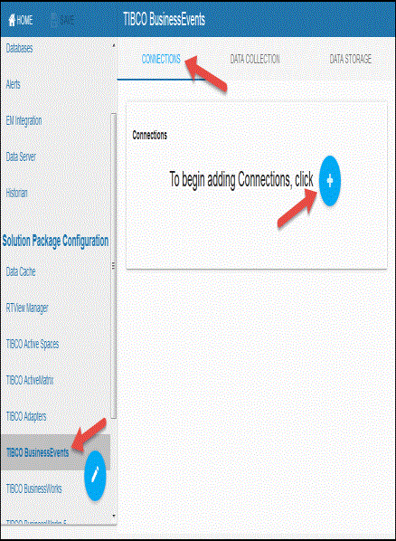 - Navigate to Solution Package Configuration>TIBCO BusinessEvents>CONNECTIONS tab.