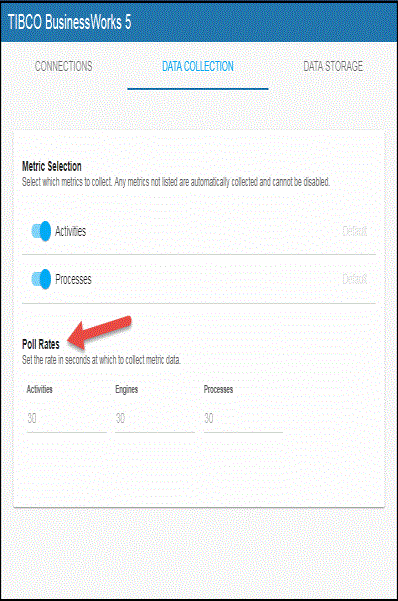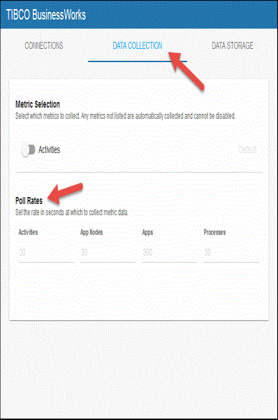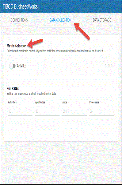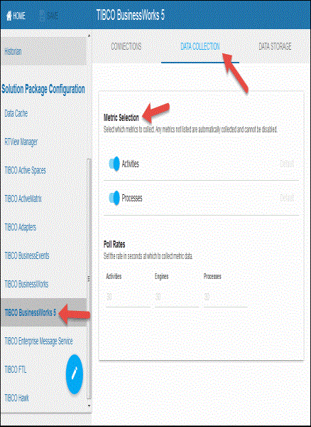 - Navigate to the Solution Package Configuration>TIBCO BusinessWorks>DATA COLLECTION tab.