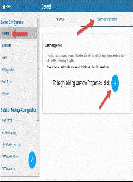 - Navigate to the Server Configuration>General>CUSTOM PROPERTIES tab.