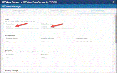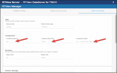 This section describes how to modify the default values for the the number of history rows to store in memory, the compaction rules, the duration before metrics are expired and deleted, and the different types of metrics that you want the Historian to store in the DATA STORAGE tab in the RTView Configuration Application. This section is optional.