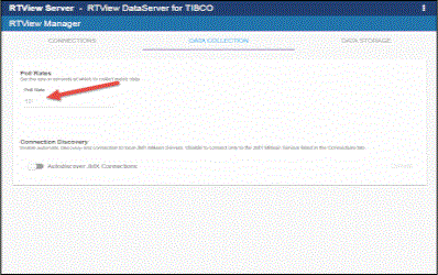 Connections for TIBCO BusinessWorks are created in TIBCO Hawk and RTView Manager (for Version 5). See Enable Monitoring via TIBCO Hawk for Versions 5 and 6 and Configuring Data Collection for RTView Managerfor more information. This section describes how to modify the default values for the data collection properties in the DATA COLLECTION tab for TIBCO BusinessWorks Version 6.
