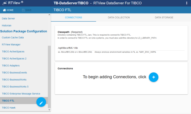 - Navigate to the Solution Package Configuration>TIBCO FTL>CONNECTIONS tab.