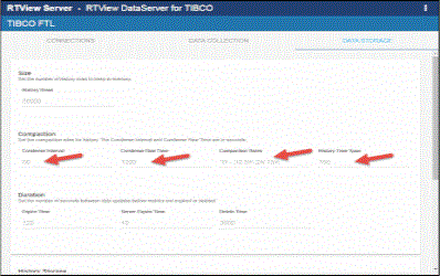 - In the Compaction region, click the Condense Interval,Condense Raw Time, Compaction Rules, and History Time Span fields and specify the desired settings.
