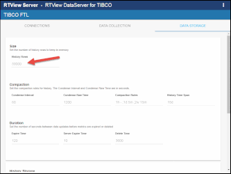 You can specify the number of history rows to store in memory, the compaction rules, the duration before metrics are expired and deleted, and the different types of metrics that you want the Historian to store in the DATA STORAGE tab in the RTView Configuration Application. These configurations already contain default values and modifications to these configurations are optional.